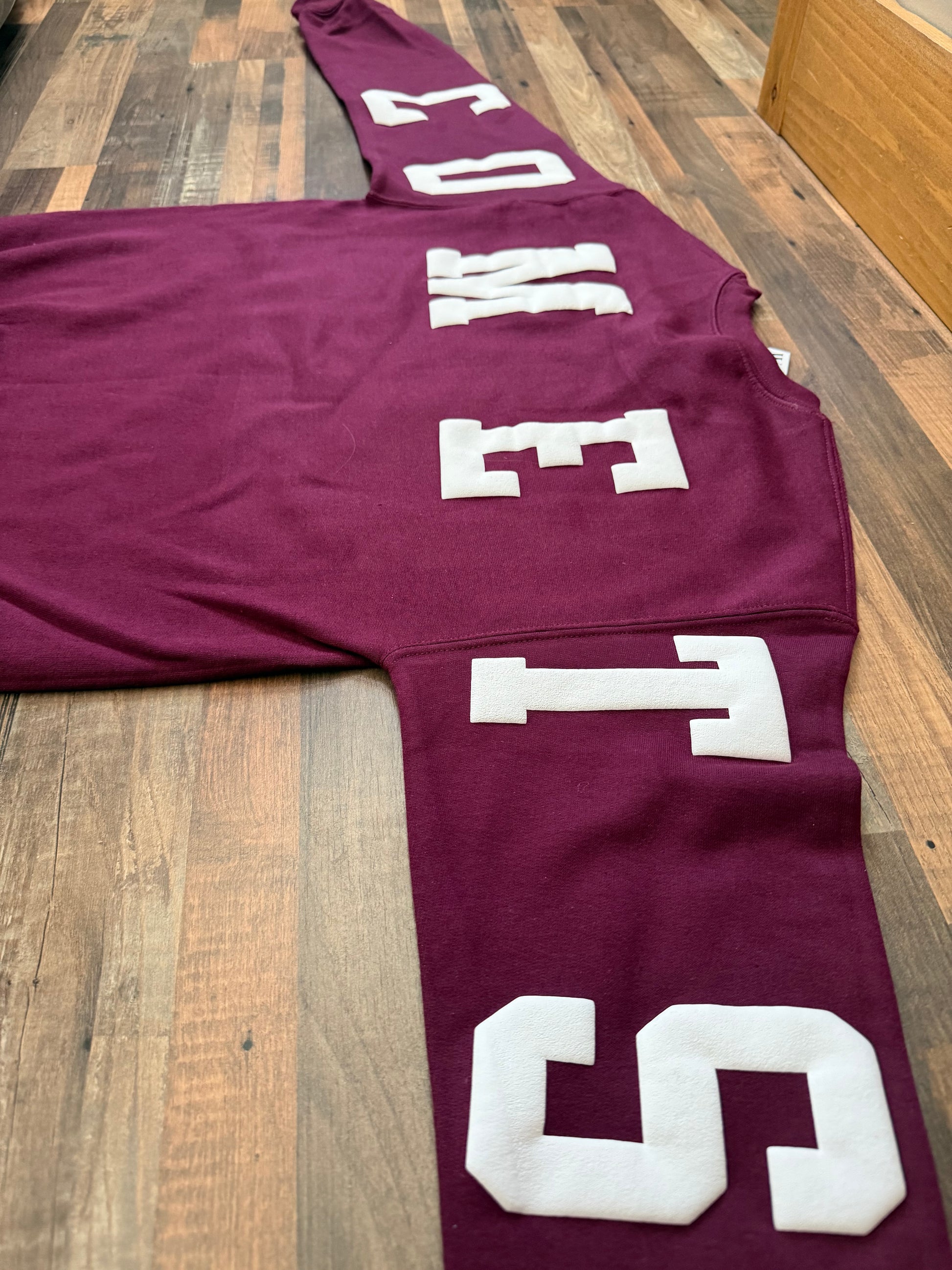 Ash crewneck with MAROON Puff back / MAROON crewneck with white puff back (youth)